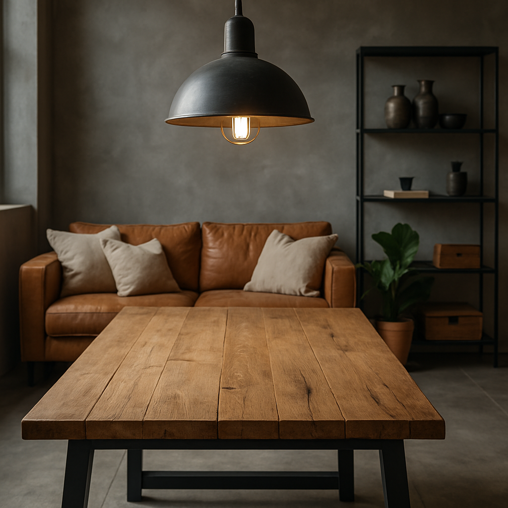 Holz gleicht die Kälte von Beton und Metall aus. Massive Holztische, gewachste Dielen oder recycelte Bretter geben dem Raum Charakter. Bevorzuge matte Oberflächen und sichtbare Maserungen — Authentizität ist hier mehr wert als Perfektion.